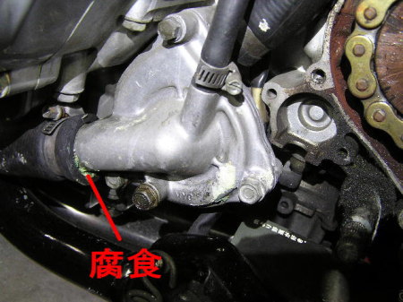 ラジエター右側のホース |