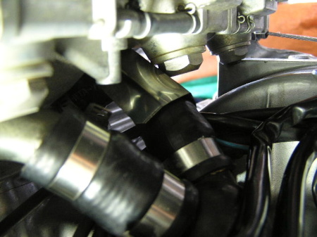 キャブレターの下には3本のホースがあります。 全部で7本のホースを交換しました。 |