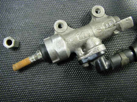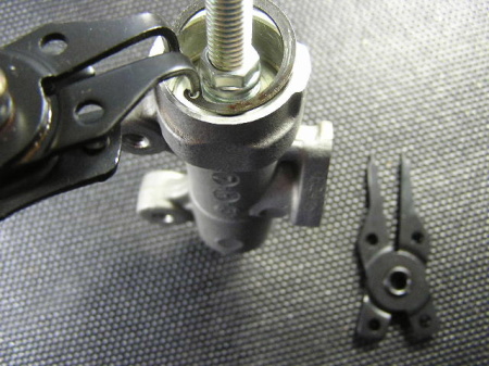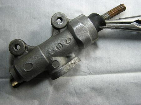 ピストンを差し込んでからプッシュロッドを差し込みます。 |