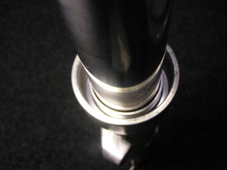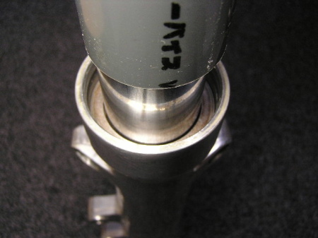 強く差込ます。 シートパイプの穴に少しギズがいきますが 多少のキズがついても問題ありません。 |