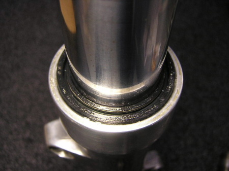 均等に込んだら ブッシュの上からシールスペーサーを入れてガッガッ打ち込みます。 シールスペーサーは使用していたものを使います。 |