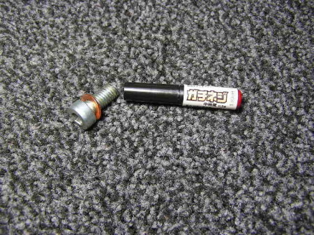 ソケットボルトにネジゆるみ止め剤を塗布します。 振動があるところですので中強度を使用します。 ガジネジ中強度300円くらい |