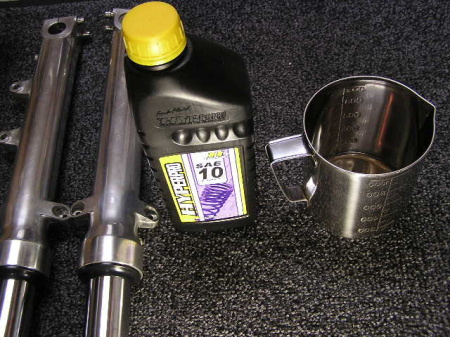 5年間使用した真っ黒なフォークオイルです。 |