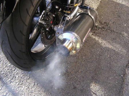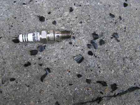 プラグとプラグキャップを付けてエンジン点火! マフラーから白煙と黒い塊がでてきました。 白煙が出なくなるまで暖機をします。 時々エンジンを少しだけ吹かします。 ※異臭がするので注意が必要です。 |