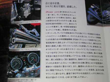 4発が、聞こえる。 混合気を吹い、動力エネルギーを生産する、呼吸のリズム。 4つのシリンダー内で確実に繰り返される一発一発の爆発。 気筒ごとに放たれるサウンドが、図太いトルクの産声をありのままに伝えてくれる。 目を閉じても、音でわかる。つきあうほどに、味がでる。 肌で感じる4発のチカラ。CB400フォアの感触。 |