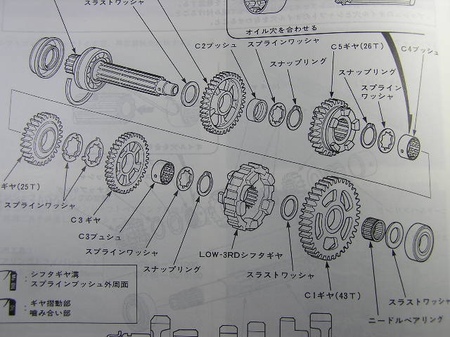 サービスマニュアルには点検方法、調整方法、分解図などが