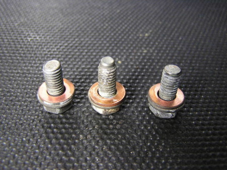 冷却水が完全に抜けれは軽くクランキングします。 3本のうちのウォーターポンプ下の ドレンボルトだけ形状がちがいます。 パッキンもできれば交換します。 |
