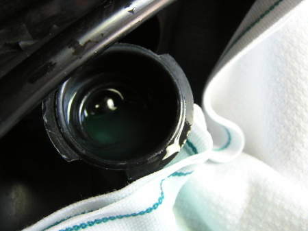 ラジエターキャップを外すと ドレンから勢いよく冷却水が出るので気をつけましょう。 |