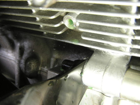 エンジンの前側にある シリンダーブロック左右のドレンボルトも外します。 |